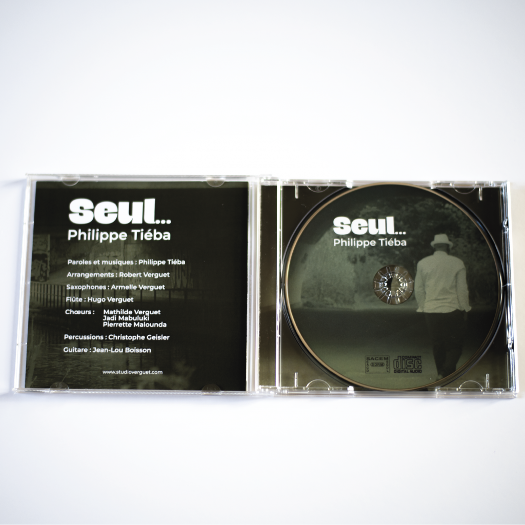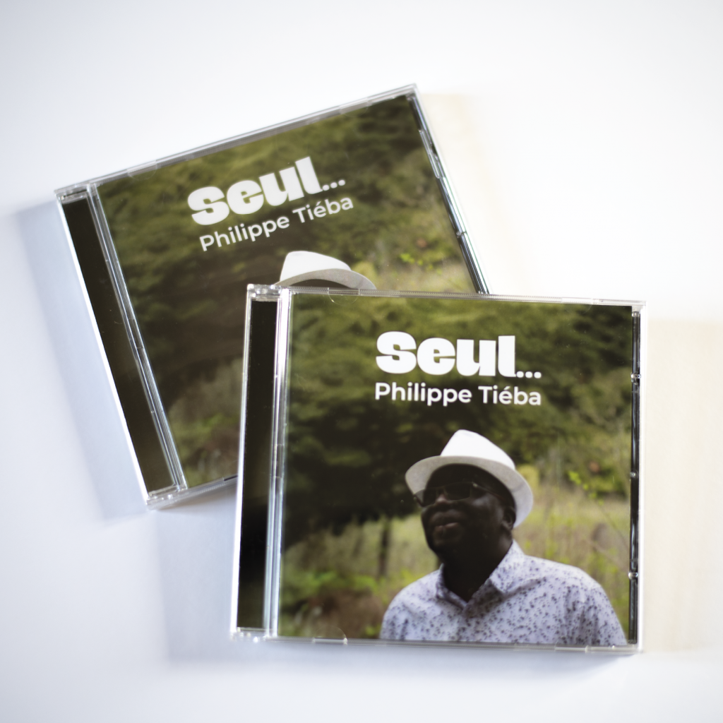 En 2025, j’ai eu le plaisir de réaliser le boitier du CD de Philippe Tiéba. J’ai également travailler la mise en forme visuelle du CD.